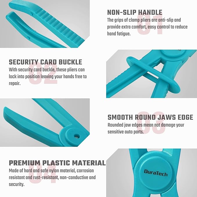DURATECH 6-Piece Hose Clamp Pliers Set - Pinch Clamp Pliers for Flexible Hoses, Fuel, Gas, Brake & Radiator Lines (Blue)