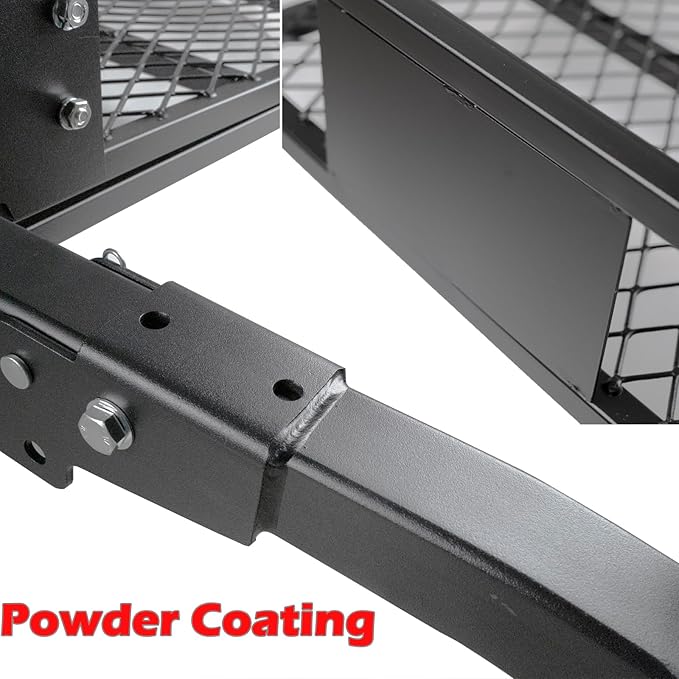 - ✅Cargo Capacity: Heavy duty hitch cargo basket with impressive 500 LBS weight capacity for secure transportation;Dimensions: 60X20X6 inches,Weighs:about 46 pounds.