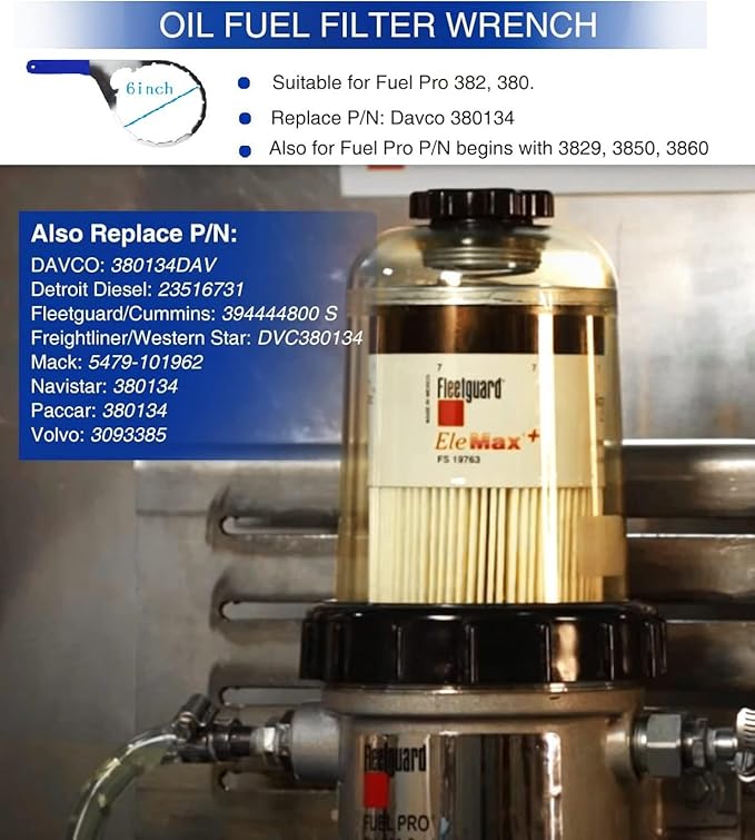 - [Compatible Models] 6 inch Fuel Filter Wrench replace 380134 382, Compatible with Detroit Diesel Truck Engines Cummins.