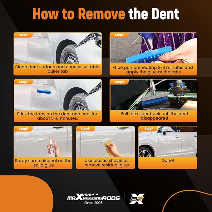 - 【Note】This car dent puller works with hot melt glue to pull the dents out. So we suggest user buy hot glue gun and glue sticks to work with our dent repair tool.