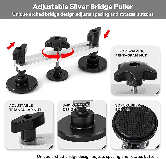 - OUTSTANDING CUSTOMER SERVICE - ① 30-day money-back guarantee for any reason. ② 24-month warranty for quality-related issues. In addition, the dent puller tool can be used for unlimited time. If you have any questions about our car dent remover puller, please make sure to tell us first, and we will provide satisfactory solutions. Thanks for choosing our dent kit