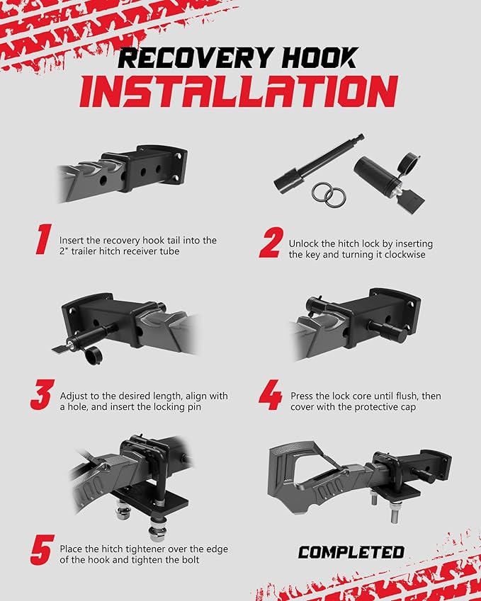 - APPLICATION: This tow hook is not only suitable for truck hitch but also for hardline off-road vehicles, trailers, SUVs, ATVs, UTVs, and other vehicles with a 2-inch receiver tube. We have provided an extended trailer lock to fit more vehicles. Please confirm that the lock length is suitable for yours