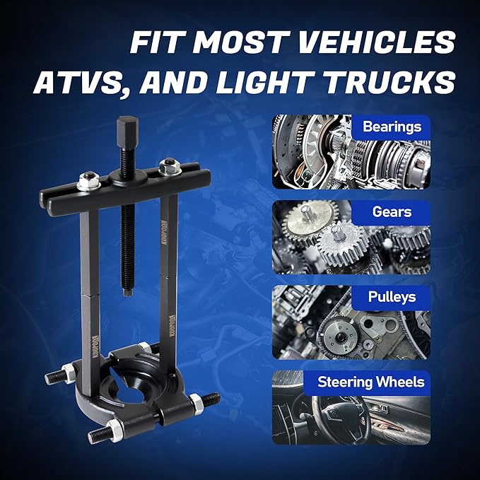 - 【SUPERIOR VERSATILE】 Our bearing separator set Includes 2-piece bearing separator jaws for most small and large wheel bearings and gears. The 8-piece push-pull legs and extension legs fit most shafts of different length. This tool set is ideal for pulling gears, pulleys, bearings, axle shafts, pinion, steering wheels on cars, vehicles, ATVs, and light trucks.