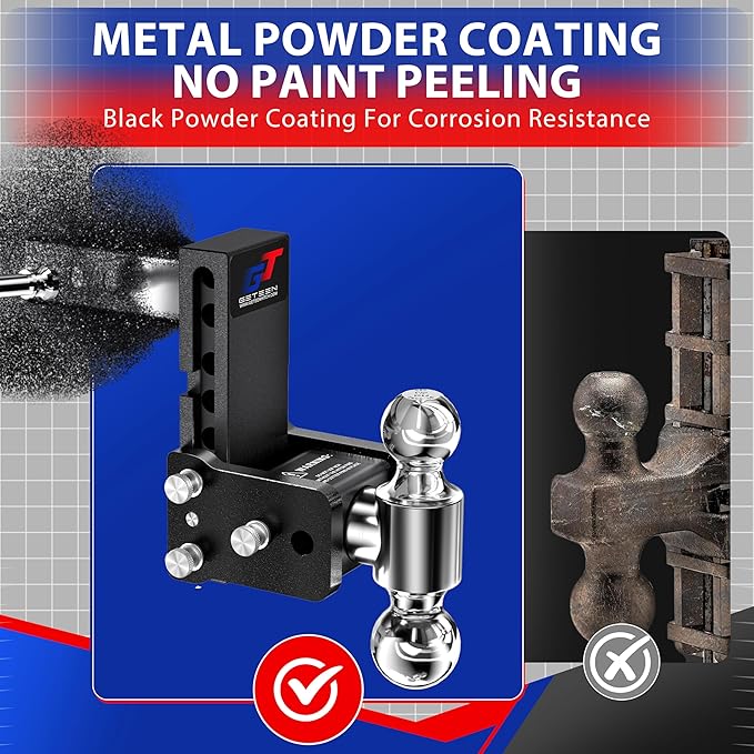 - RUGGED & RESILIENT - The Adjustable Ball Mount Trailer Hitch is built to last thanks to its high-strength steel construction and corrosion-resistant finish. Two layers of protection—an e-coat and ironclad black powder coat—create a durable, long-lasting coating that can withstand the toughest conditions. Manufactured to haul equipment to the jobsite all week and launch the boat each weekend, the hitch was made to be as hardworking and versatile as you are.