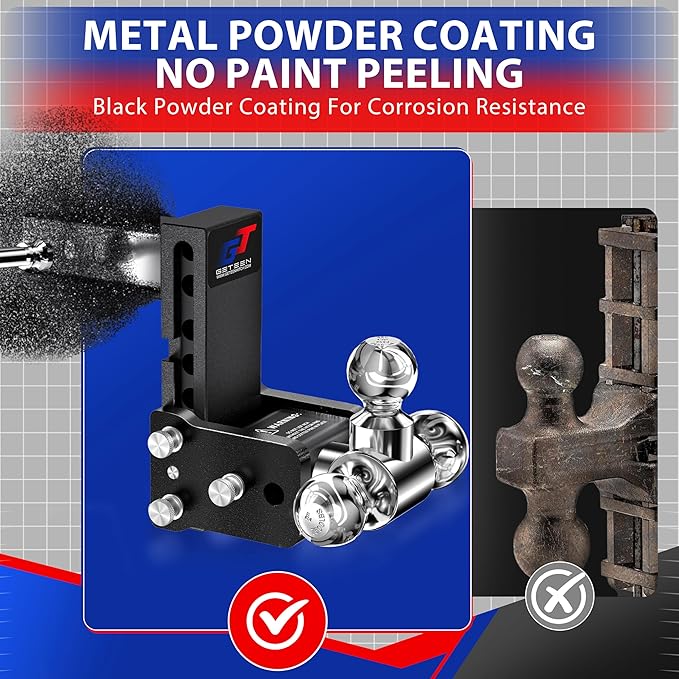 - RUGGED & RESILIENT - The Adjustable Ball Mount Trailer Hitch is built to last thanks to its high-strength steel construction and corrosion-resistant finish. Two layers of protection—an e-coat and ironclad black powder coat—create a durable, long-lasting coating that can withstand the toughest conditions. Manufactured to haul equipment to the jobsite all week and launch the boat each weekend, the hitch was made to be as hardworking and versatile as you are.