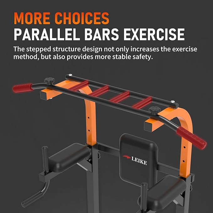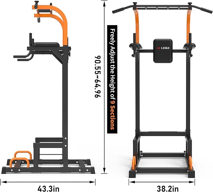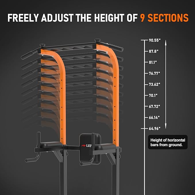 - 【Compact and Utility】Leikefitness power tower takes the compact space to use and can be collected in any room or garage.Pull up and dip bar station have 4 adjustable height from 70.47 - 88.19 inches,Over 500LBS high capacity.