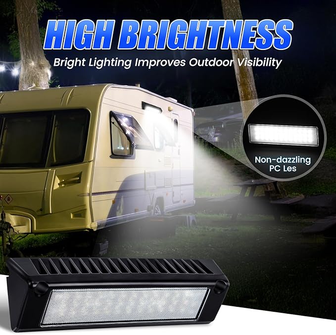 - SUPER BRIGHTNESS: SUPAREE LED RV porch light adopt 36pcs premium LED lamp beads to ensure that each light can produce a stable output of 2000LM. Anti-glare PC len ensures comfortable, glare-free lighting, giving you a sun-like RV lighting experience