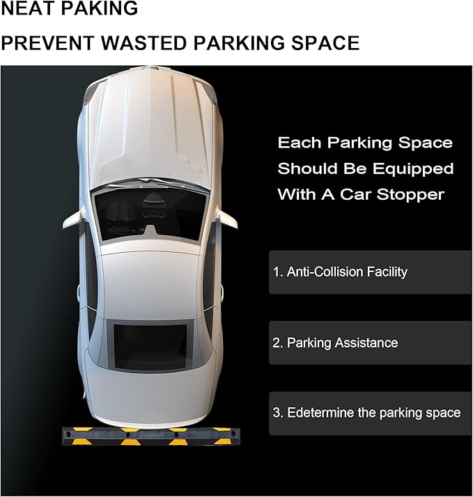 - Parking Aid: Designed specifically for vehicles such as cars, vans, and trucks. Install this parking wheel stopper in your garage or driveway to protect your vehicle from damage