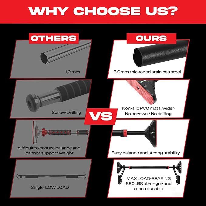- ✅ EFFORTLESS INSTALLATION: Transform your home into a gym in seconds with the Core Frenzy Pull-Up Bar for doorway —no screws, no drilling, no damage. Just twist and lock into place for a rock-solid grip. Ideal for doorway pull up workouts or as a chin up bar with no wall damage solution.