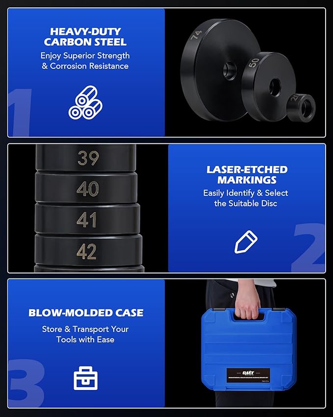 - Custom Case for Easy Storage: The wheel bearing press tool kit includes custom blow-molded cases for neat organization and convenient transport, keeping your tools safe and ready for use