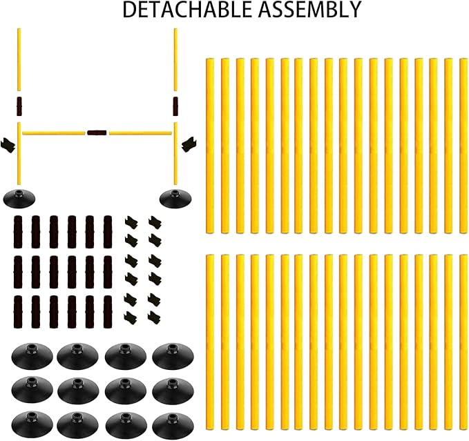 - The soccer agility training poles set is detachable and assembled. These mini swivel clips features a rotatable swivel design that allows you to put two agility poles together and adjust the angle or height they are connected. So you can use it as a hurdle or as a training pole on its own.