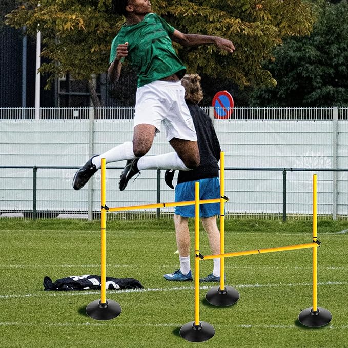 - The agility hurdle set is suitable for coaches and athletes who train in group, or can be practiced in the backyard alone. This is an excellent training agility poles set or a great gift for your family and friends. It is designed for speed and agility training, such as balls, track and field.