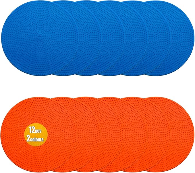 - 【9 INCH DIAMETER】There are 2 different colors, orange and blue. Size: 9 inch (23cm); Quantities: 12 pcs.LZKIB's poly spot marker is equipped with portable storage bag for easy placement and carrying.