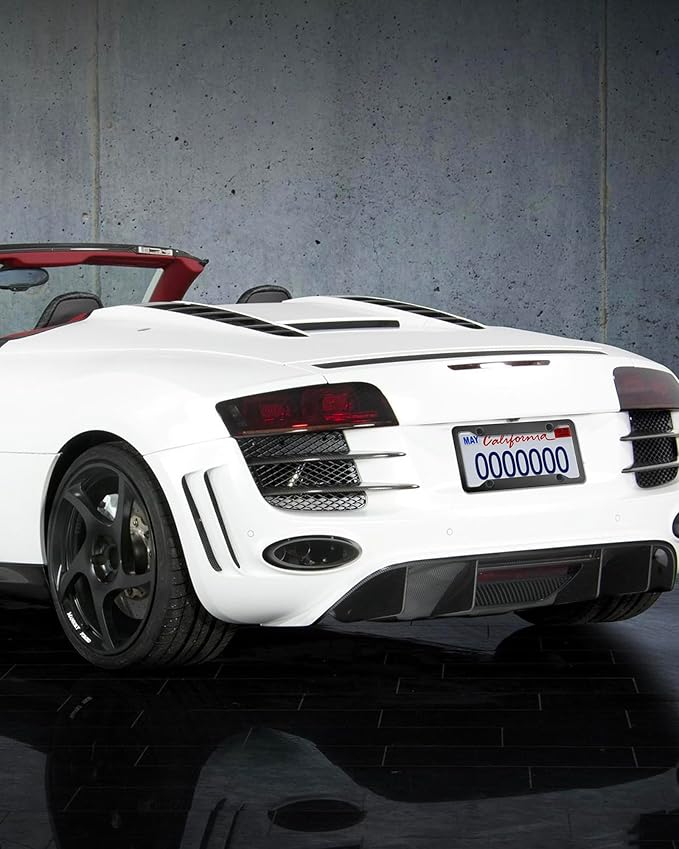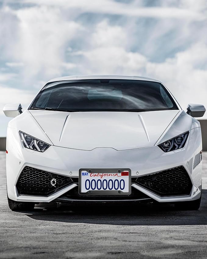 - Fit US License Plate- Slim car plate frame design, size 6-3 / 8 "x 12-1 / 4". The 4-hole unique thin edge will not obscure the labels at the 4 corners, and is street legal in most states. The width of the top and bottom borders is 28mm (1.1 inches), which may obscure the State name, such as in TX, GA, please confirm the traffic laws of the local state before purchasing