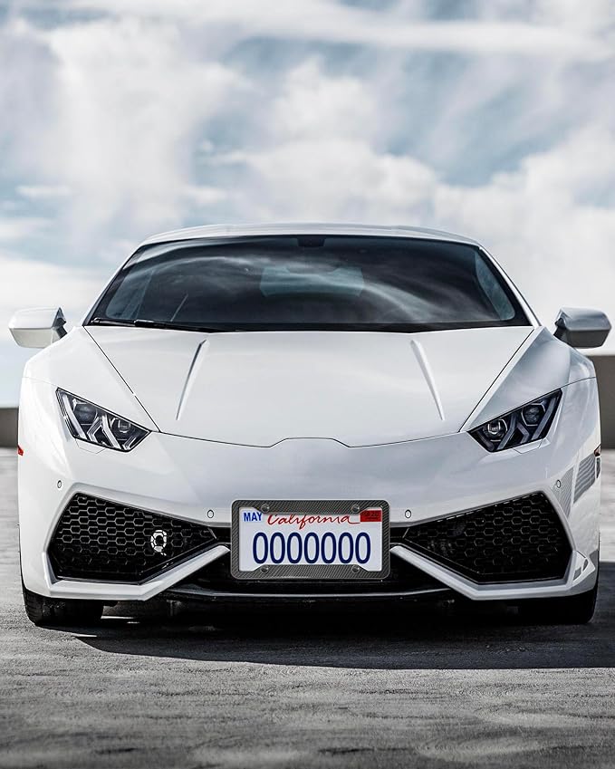 - License Plate Frame Carbon Fiber- Matte black aluminum metal license plate holder with carbon pattern printed on the surface (Not Real Carbon Fiber License Plate Frame). Heavy duty frame, corrosion-resistant, rust-resistant, weather-resistant, and fade-resistant. Lasting as new after using for a long time. Comes in 2 pack, suitable for front bumper and rear license plate holder. 4 hole frame can install firmly