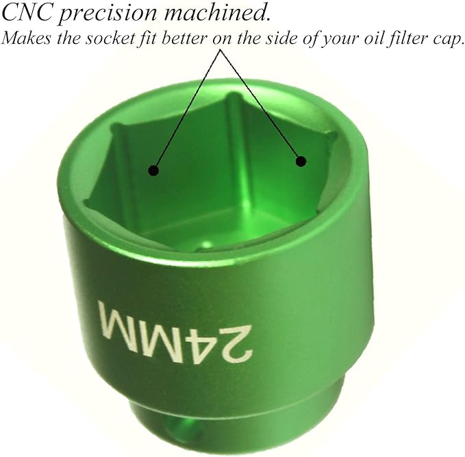 - 24mm oil filter socket, Aluminum alloy low profile 6-point 3/8" Drive Oil Filter socket fits BMW, Chrysler,Chevy, Dodge, Jeep ,suitable for also other 24MM filter Cap Removal & Installation. Oil filter tool is you a good choice for an oil change oil change tool.24 mm wrench. it is not recommended for use on axle nuts and rusted steel nuts or pneumatic Impact tools
