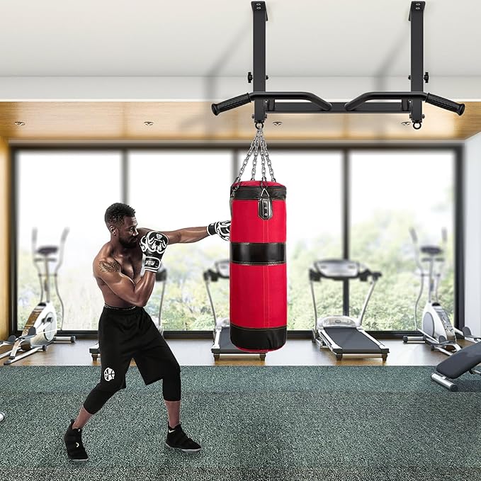 - 【Durable and Secure】Crafted from heavy-duty steel with advanced welding and a black electrophoretic coating, this Ceiling Mounted Pull Up Bar supports a maximum weight of 400 lbs and features a 4-hole design for extra stability.