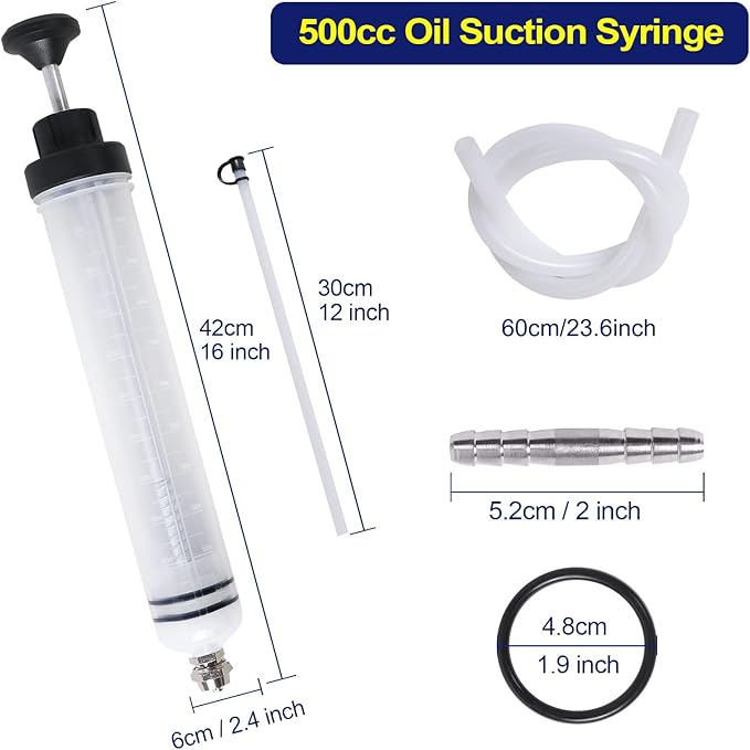 AIGMISON 500cc Oil Suction Syringe Fluid Transfer Pump with Hose, Brake Fluid Pump, Oil Fluid Extractor, Automotive Oil Syringe Liquid Extractor and Filling Pump