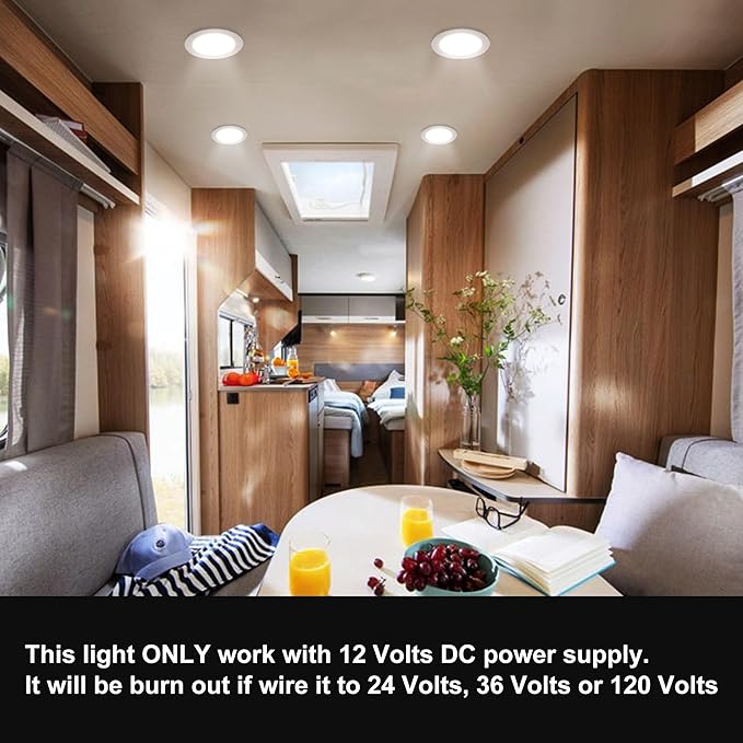 - Versatile Lighting: Ideal for RVs, vans, campers, trailers, motorhomes, and boats, these 12Volts DC LED interior lights provide bright, energy-efficient illumination. If you use it at home (120volts AC), please wire this fixture to a proper transformer (not included).