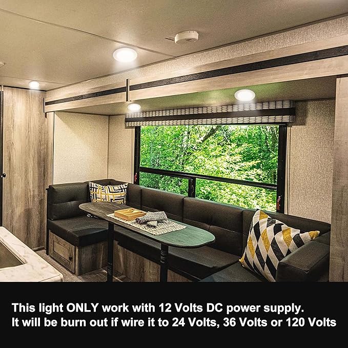 - Versatile Lighting: Ideal for RVs, vans, campers, trailers, motorhomes, and boats, these 12Volts DC led interior lights provide bright, energy-efficient illumination. If you use it at home (120volts AC), please wire this fixture to a proper transformer (not included).