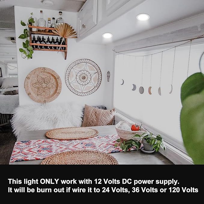 - Versatile Lighting: Ideal for RVs, vans, campers, trailers, motorhomes, and boats, these 12Volts DC led interior lights provide bright, energy-efficient illumination. If you use it at home (120volts AC), please wire this fixture to a proper transformer (not included).