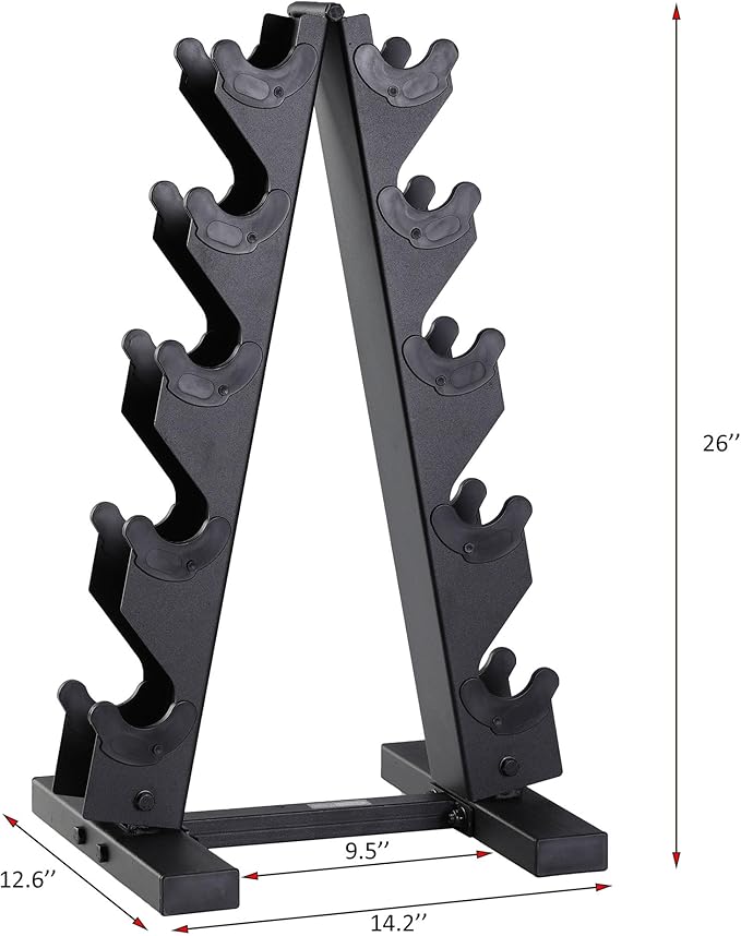 - Complete Fitness Starter Kit: This set includes 5, 8, 10, 12, and 15-pound dumbbells paired with a compact storage rack, giving you a well-rounded selection of weights for a variety of workouts while keeping everything organized.