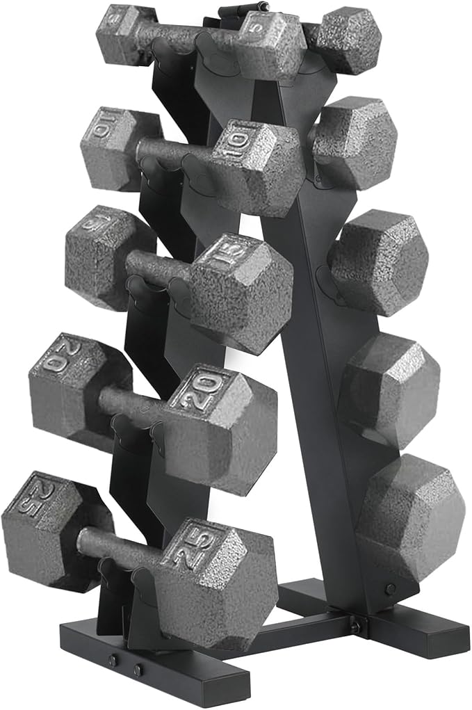 - Dumbbell Set: Dumbbell set includes a pair of 5-pound, 10-pound, 15-pound, 20-pound, and 25-pound weights, plus a convenient storage stand to keep your weight set organized