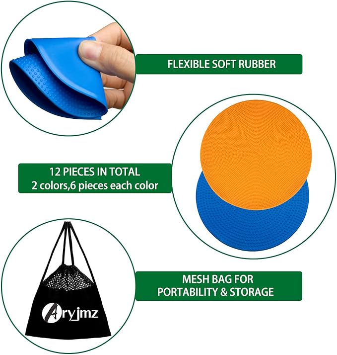 - 9 INCH DIAMETER:Each spot marker has a 9 inch diameter and is the perfect size for a variety of games in gym class or agility drills when practicing soccer,hockey, basketball,football and other sports.Which is a great alternative to traditional cone marke
