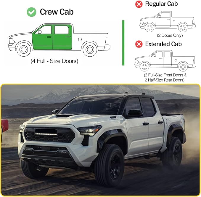 - ⭐【FIT FOR】Window Wind Deflector compatible with Toyota Tacoma 2024 2025+.(Note: Not the In-Channel Ventvisor! This product is installed in s double-sided adhesive paste mode!)