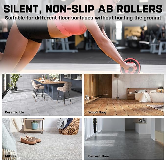- 【Silent & Non-slip】Our abs roller workout equipment, using non-slip rollers, with super friction, not easy to slip, while using a silent design does not hurt the floor and carpet, gel cotton handle, comfortable grip, to protect your hands, and more sweat-absorbent.