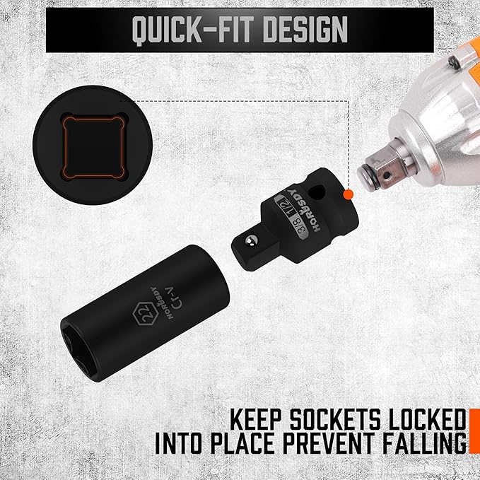 - Wide Application: HOURSDY Impact Extension Set , providing tools for almost any project, including automotive repairs, home improvement, and mechanical work. It is compatible with all cordless, electric, and pneumatic impact wrenches, perfect for tasks like tire changes, engine work, and general maintenance.