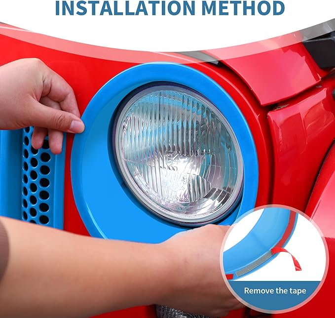 - 【HIGH QUALITY】 PDKLIN for Wrangler JK Light Blue Front Grille Inserts & Headlight Cover Trim Ring made of high-quality ABS plastic and used polish process for deformation protection, anti-corrosion, and years of trouble-free use