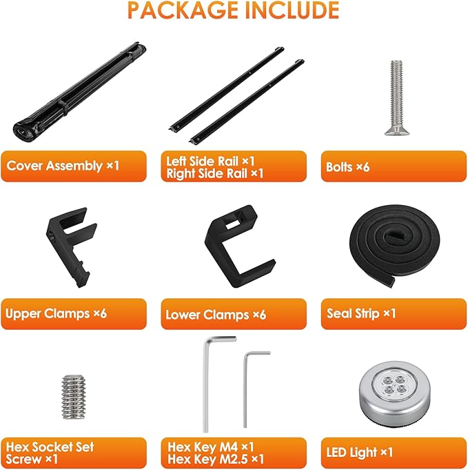- Roll-up Design: The soft cover is easy to open and close, with a roll-up structure that saves space.Attached is a user manual and accessories for easy installation.No tools or drilling required.