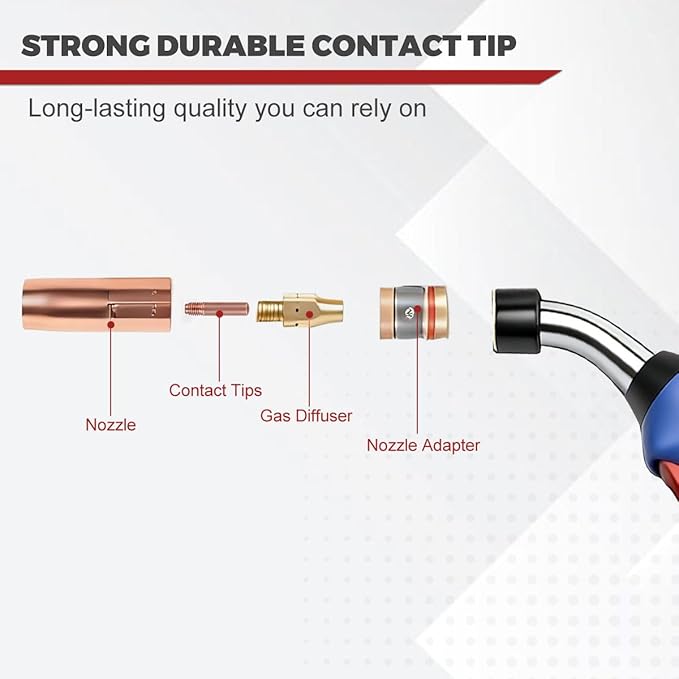 - ✨ The list includes: 1pcs x Torch, 10pcs x Contact tip, 2pcs x Nozzle ,2pcs x Gas diffuser,2pcs x nozzle holder