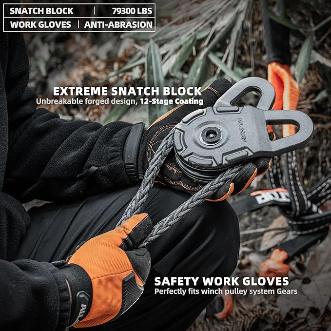 - 【Package Includes】 [RECOVERY PACK 11-IN-1] 1) Recovery Strap 4'x30ft. 2) Tree Saver Strap 3'x8ft. 3) Extension Strap 2'x65.6ft. 4&5) 3/4in Soft Shackles x2. 6) Winch/Strap Damper. 7) Snatch Block. 8) Digital Tire Deflator Gauge. 9) D-Ring Shackle hitch Receiver Mount. 10) Work Gloves x2. 11) Recovery Bag. Each Product's Feature & Introduction could be found in our detail page or Brand Store.