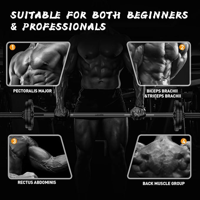 - EXERCISE MULTI-POSITION MUSCLES: Our bench press bar is helpful for biceps, triceps, abdominal muscles, etc. You can also cooperate with the fitness bench for training, and assist in the exercise of shoulder, back and leg muscles.