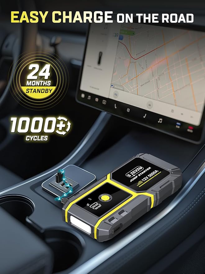 S ZEVZO H021 Car Jump Starter, Peak 5000A Jump Starter Battery Pack for Up to 10.0L Gas and 8.0L Diesel Engines, 12V Portable Jump Box with LCD Display, 3 Modes Flashlight and Protective Carrying Case