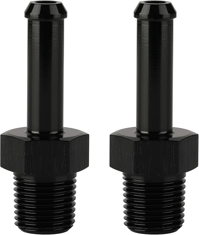1/8 NPT Male to 1/4" Hose Barb Fitting Adapter Nipple Straight Aluminum Black 2PCS