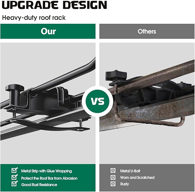 - Easy Installation: This rooftop cargo carrier can be mounted directly on the beam of the car. Use 4 universal U-bolts and other accessories for installation. It only takes an adult ten minutes to install.