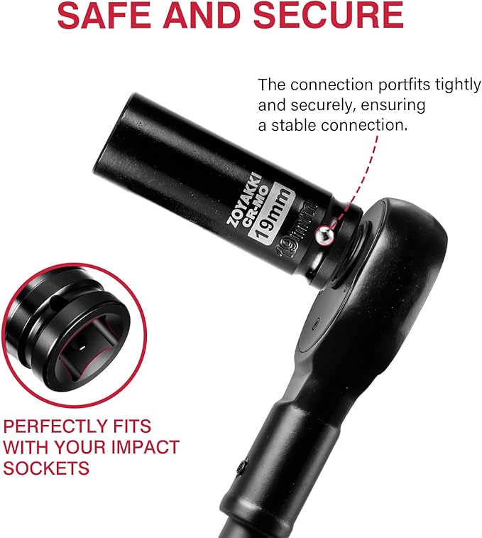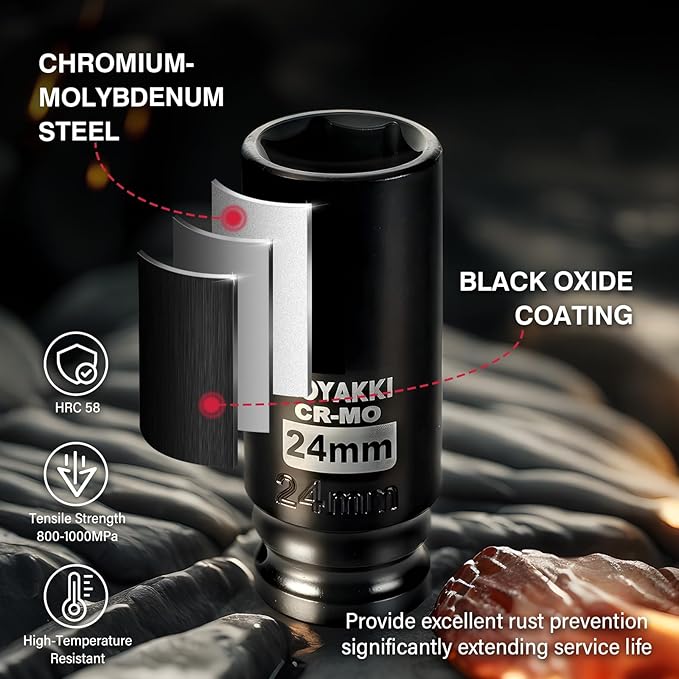 - CR-MO Steel Construction: This impact socket wrench set is made from ultra-durable alloy steel with a corrosion-resistant black phosphated finish, designed to withstand wear and corrosion. Its robust construction prevents cracking under high pressure, ensuring maximum strength and longevity