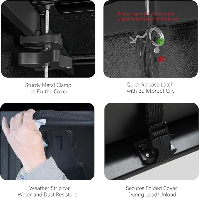 - Easy Installation: With a complete set of hardware, LEDKINGDOMUS bed cover mounts easily without harming your vehicle; The reinforced clamp design adds to driving safety by resisting impact