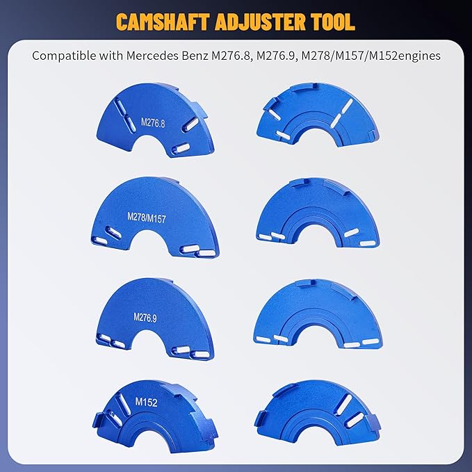 - The camshaft alignment timing tool is compatible with Mercedes Benz M133, M152, M157, M270, M274, M276, M278 engines.The camshaft adjuster tool kit is compatible with Benz M152, M276.8, M276.9, M278/M157.