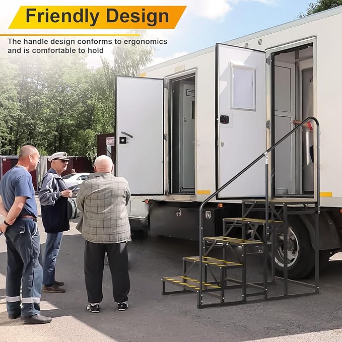 - Enhance Safety and Convenience with Portable Steps and Handrails :Our portable RV steps with handrails are designed to provide unparalleled stability and support, whether you're climbing into your RV, accessing your hot tub, or navigating any other elevated surface. Crafted from durable carbon steel, our handrails are securely attached with robust screws, ensuring reliability and peace of mind during every use.