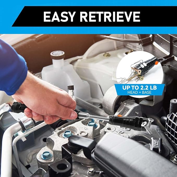 - Multi-Functional Use: Equipped with a magnetic head and base, along with a 360° flexible telescoping neck, this tool is perfect for retrieving screws, nuts, bolts, and metal objects in tight spaces. Whether it’s for car repair, camping, or general household use, this tool is built for versatile applications