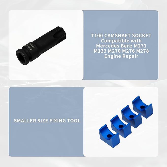 - 【OEM Number】OEM number is 270 589 01 6100. Camshaft locking tool compatible with Mercedes Benz A-class, B-class, NEW M270, M133, and M274 engines and suitable for vehicles fitted with the chain-driven 1.6/2.0, V4 direct injection petrol engines.