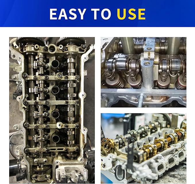 - 【High-Precision Design】The camshaft timing tool kit is used to loosen and tighten the bolt connection of the camshaft gear. It adopts a high-precision design, the size and diameter of the retaining clip ensure that the camshaft is correctly fixed in place, and the camshaft can be easily disassembled and assembled.