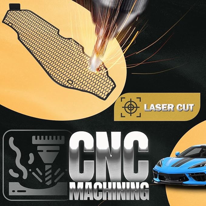 - The side intake mesh grilles is made of aero aluminum alloy and hard anodized black,It's CNC machined, not 3D printing, it can greatly prevent corrosion and oxidation, ensuring that it will last for a long time,it can get more air because of the mesh design of the grille inserts. This encourages improved cooling for the engine and other parts, ensuring peak performance even under difficult driving circumstances. You may see increased engine performance as well as better fuel economy with improved airflow.