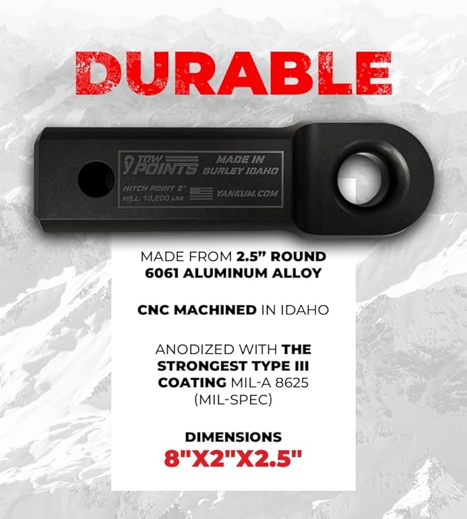 Yankum Hitch Receiver Recovery Point 2" - Made in The USA, Heavy Duty Recovery Hitch for Off-Road Use, Fits 3/4" & 7/8" Shackles, Tow Hitch Shackle for Jeeps, Trucks, RVs, Recovery Kit