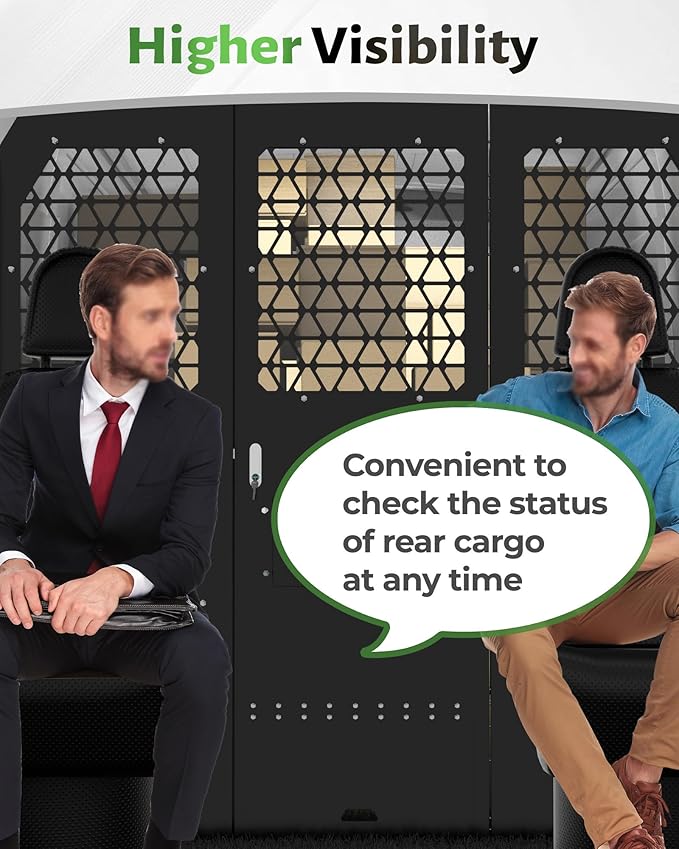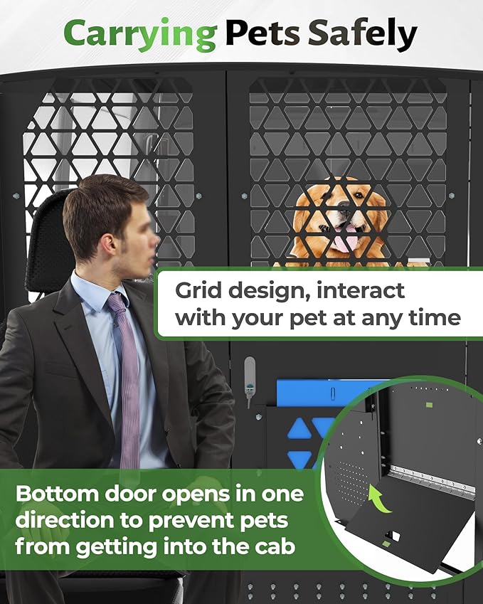 - Safe to Carry Pets:The unidirectional opening door at the bottom can effectively prevent pets from breaking into the cab and affecting the driver's driving;you can also observe the status of pets in the rear compartment at any time through the mesh holes on the safety partition,safe to interact with your pets