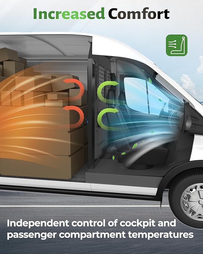 - Improved Comfort:For long drives or multiple passengers, the cargo van partition ensures that the temperature in the cockpit and passenger compartment is controlled independently of each other, providing different temperature environments in different areas and reducing the load on the air-conditioning system
